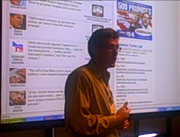 The Pulitzer Prize-winning PolitiFact is a dynamite project of the St. Petersburg Times that political junkies like me love. And here’s Scott Montgomery, one of its editors! If you don’t know PolitiFact.com already, check it out. Here are some of the bullet points from Scott’s presentation: