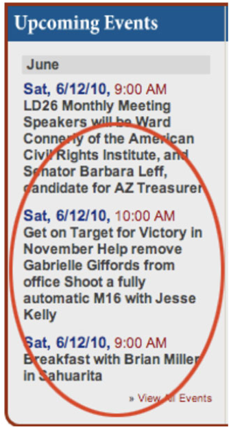 Giffords’ 2010 opponent scheduled a campaign event that invited supporters to “Help remove Gabrielle Giffords from office. Shoot a fully automatic M16 with Jesse Kelly.”