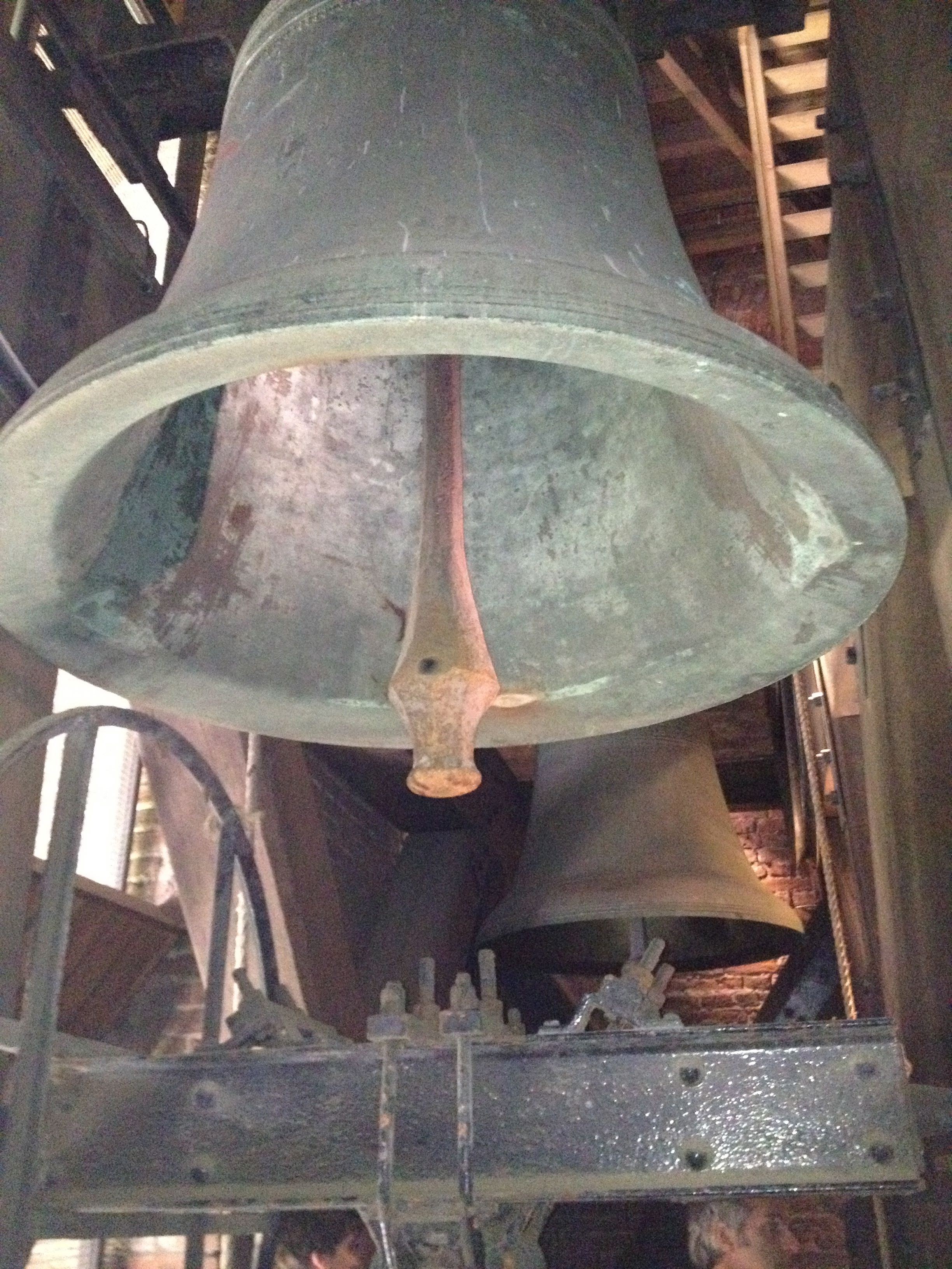 The first stop, after about 50 stairs, is the former bishop’s chapel, where the bishop could both take refuge and repel intruders, as needed. The second level — up about another 50 steps — was once the home of a watchman or guard, if I recall correctly. Then the climbing gets serious, reaching the level of the bell tower. One of the bells weighs nine tons, and the total weight of all the bells is about 16 tons. They still ring day and night, marking the quarter hours for any sleepless souls awake at 3 a.m. Our host at Rosendalen Apartments assured us that local people don’t even notice them.