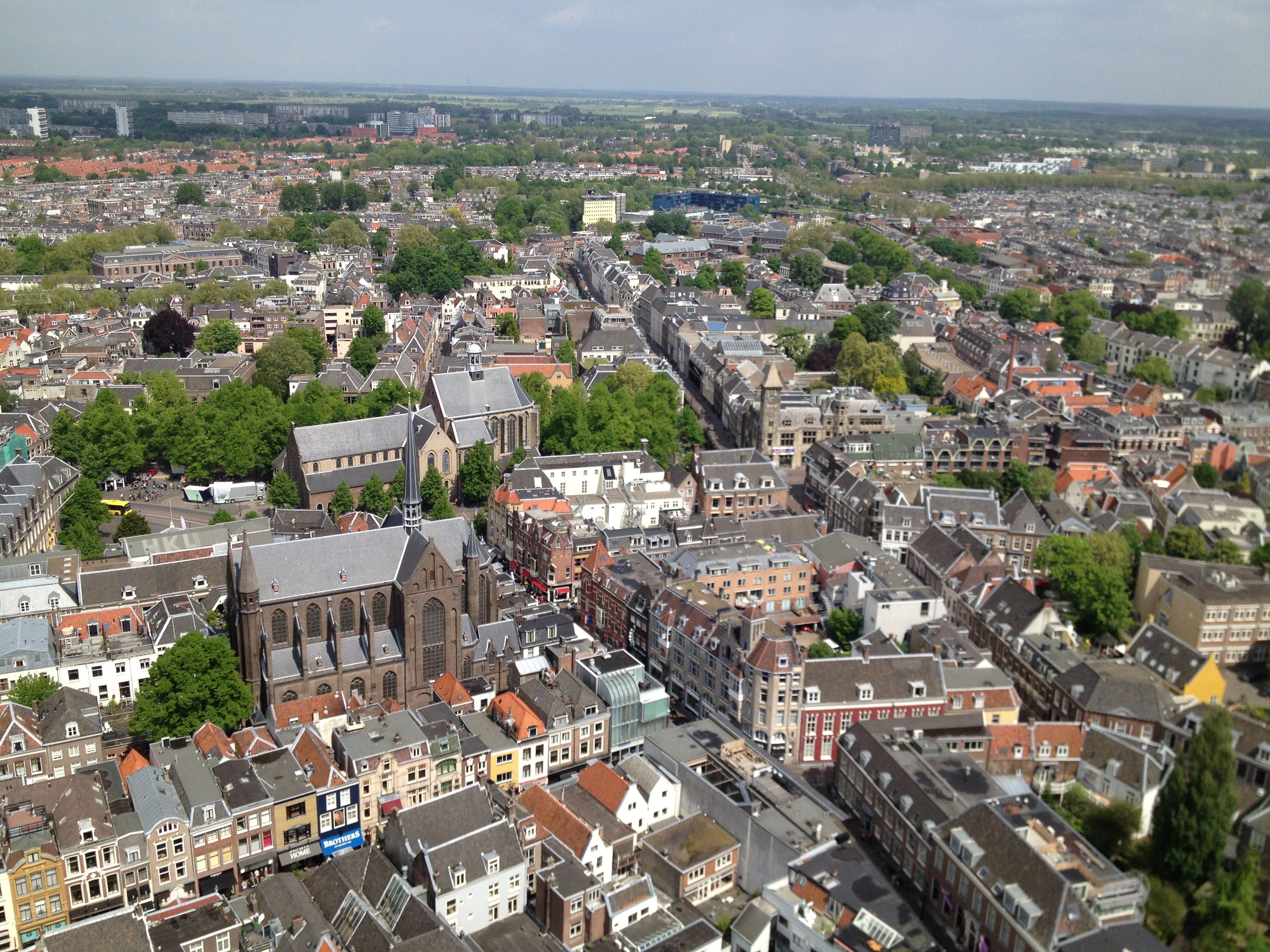 The Domtoren is the highest point in Utrecht, towering 368 feet above the city, with its giant bells and melodic carillons inescapably marking time throughout the day and night. You might think that the bells need not ring the half and quarter hour during the wee hours of the morning, but you’d be wrong. The biggest bell weighs nine tons.