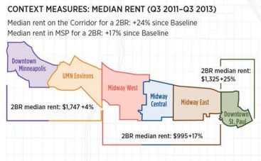 Marlys Harris’s May 17 article in MinnPost summarizes and analyzes the Big Picture Project report, and is worth reading in full. Harris discusses the relation of rents and transit-oriented development along the Green Line/Central Corridor.