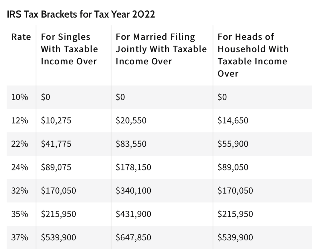Here’s how marginal tax rates work. A single taxpayer with a taxable income of $50,000 in 2022 would pay: