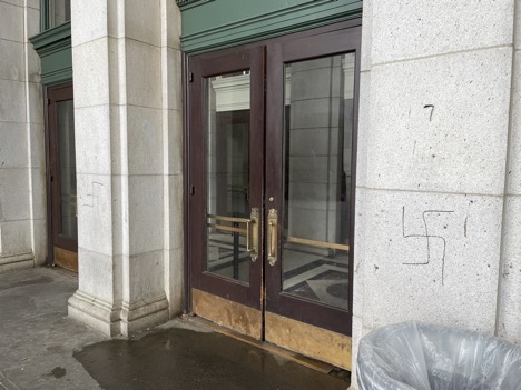 Holocaust Remembrance Day was yesterday, January 27. Today, Bo Erickson of CBS News reports that there are swastikas drawn on almost every column in Union Station in Washington, DC.